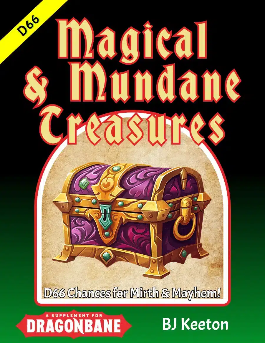 Everybody loves treasure. And what’s better than treasure? Random, magical treasure! Any of these items will be right at home in a Dragonbane, and they certainly make sure to take advantage of the mirth and mayhem playstyle.